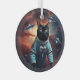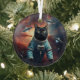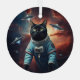 Une image captivante d'un chat noir habillé en astronaute, regardant avec confiance dans le cosmos. Entouré de soucoupes volantes et d'une nébuleuse vibrante, le chat incarne un sentiment d'aventure et de mystère.