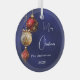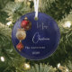 Un arrière - plan bleu marine aux couleurs inégales. Décoré de billes rouges et or. Personnalisez et ajoutez votre nom, année. Texte : Joyeux Noël