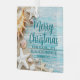 A cute custom beach business holiday gift for a tropical island company. Customize this pretty teal blue wood and seashell photography Christmas ornament with your seaside corporation name or other coastal professional text.