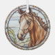 Célébrez l'esprit de la saison avec notre magnifique ornement de Noël de poulailler de cheval, magnifiquement conçu dans un magnifique design en vitrail.