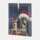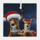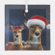 Cette conception comporte une rondelle et un doe qui portent des chapeaux de Père Noël dans la neige.