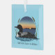 Un huard sur un lac au coucher du soleil et des cailloux sur fond de bleu