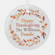 Cette magnifique décoration d'automne de la famille Thanksgiving présente une jolie couronne de feuilles marron, orange et rouge autour de votre texte personnalisé. Customisez ce cadeau avec votre nom de famille et votre année dans de jolies couleurs d'automne.