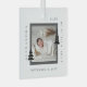 Minimal et élégant, ce ornement photo pour bébé garde capte magnifiquement le premier Noël de votre nouveau-né. Doté d'un cadre rayé noir et blanc classique, le design met en valeur la photo de votre bébé avec un style intemporel. Autour de l'image, des arbres à feuillage persistant délicats et une typographie moderne présentent le nom de votre bébé, sa date de naissance, son heure et ses caractéristiques dans un agencement propre et contemporain. Une façon significative et élégante de commémorer un moment précieux pendant la période des fêtes. Illustration originale dessinée à la main par ©Moodthology Papery