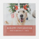 Photo sur mesure design moderne Happy Pawlidays ornement de vacances avec lettrage serif moderne avec de petits empreintes de pattes superposés dans un bloc rouge festif au fond. Votre photo et votre texte d'ami animal de compagnie peuvent facilement être personnalisés pour un design aussi unique que votre bébé à fourrure spéciale! L'image montrée n'est à des fins d'illustration que pour être remplacée par votre propre photo. L'image de l'espace réservé est celle d'un adorable chiot portant un bois de rennes.