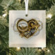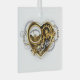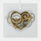 Coeur steampunk mécanique, volumétrique, avec manomètre, acier et or sur arrière - plan blanc. Style Steampunk.