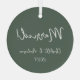 Célébrez votre premier Noël en couple marié avec cet ornement personnalisé en verre vert boho. Doté d'une charmante écriture manuscrite, cet ornement affiche magnifiquement les noms de la mariée et du marié, ainsi que l'année. Le ton vert terre ajoute une touche d'élégance naturelle, ce qui en fait un parfait garant pour cette étape spéciale. Personnalisez-le avec vos noms et l'année pour créer un ornement unique qui capture l'amour et la joie de votre première saison de vacances en tant que mari et femme.