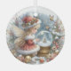 Draped in Santa red and crowned with holly, a fairy-like figure gazes into a golden snow globe beneath falling snowflakes. With pastel ornaments and delicate wings, this scene evokes the quiet enchantment of Christmas dreams.