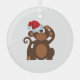 A cartoon monkey in a Santa a decorates this adorable glass ornament