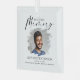 Cet élégant ornement funéraire en verre, pour les amis et la famille, ferait un grand souvenir. L'ornement moderne en verre de noël arboré comprend une photo de votre être aimé, avec un effet de brosse.Texte qui dit "IN LOVING MEMORY" leur nom, dates et un message personnel. Certains styles de police de texte, taille, couleur et couleur peuvent être modifiés en cliquant sur le lien personnaliser après la personnalisation.