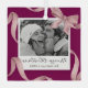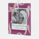 Élégant ornement en verre de Noël avec un magnifique arrière - plan de vin, avec un centre photo orné d'un joli ruban d'aquarelle rose et d'un arc. Complétez avec votre nom de famille, l'année et les Joyeuses Fêtes "joyeux noël".