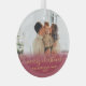 Elégant Rouge et Or Lettré "Joyeux Noël" Script de la famille de photos ornement. Comprend votre photo de famille préférée, "Joyeux Noël" calligraphie texte en écriture manuscrite, nom de famille et année. Facile à personnaliser. Conseil photo : recadrez votre photo sur le formulaire carré avant de la télécharger.
