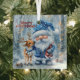 Snowfall & Scarlet Threads Ornement en verre Dans une forêt enneigée remplie de pinecones et de flocons en chute, un joyeux gnome dans une tenue d'hiver bleue partage un moment tendre avec un petit renne. Le gnome tient un foulard à motifs rouges et blancs, faisant écho à l'esprit festif qui danse à travers la scène. Leur regard affectueux et la douce chute de neige créent un sentiment de paix, de connexion et de magie de vacances.