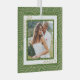 Votre photo préférée est présentée sur un ornement en verre carré avec des lignes dorées et des points motifs en vert. Personnalisé et téléchargez votre propre image pour créer des ornements d'arbre de Noël pour vous-même ou donner comme cadeau à la famille, amis, parents et grands-parents! PLUS DE DESIGNS dans notre magasin.
