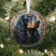 Il s'agit d'un joli ornement en verre avec un thème de vitrail, avec un beau chien noir et tan Gordon Setter. Le chien est dressé contre un arrière - plan principalement bleu pâle et or. Cela fait un bon rembourrage ou décoration pour la maison qui aime un Gordon Setter.