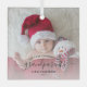 Aidez-les à célébrer leur premier petit-enfant avec ce magnifique ornement moderne de gardiens. Le texte en noir "Notre premier Noël en tant que grands-parents", avec le mot "grands-parents" dans un élégant script d'écriture manuscrite avec des fioritures avant et après. Remplacez facilement l'image de l'échantillon par votre photo préférée du nouveau bébé, et ajoutez son nom et l'année. Un filtre dégradé blanc permet de faire apparaître le texte.