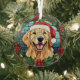 Ornement En Verre Holly Wreath Golden Retriever Chien Noël