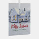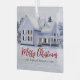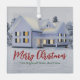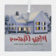 Ce magnifique ornement de Noël immobilier personnalisé est parfait pour une entreprise immobilière située au nord. Superbe neige blanche borde les arbres et maison sur ce cadeau de vacances d'hiver. Un courtier peut garder Joyeux Noël en écriture rouge et verte ou customiser avec ses propres Joyeuses Fêtes.