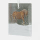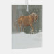 Un joli cheval de palomino ludique courant dans la neige. C'est un joli ornement de Noël.