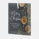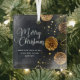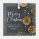 Cet élégant ornement de Noël d'entreprise présente une belle typographie blanche cursive sur une belle photo de vacances. La photo présente des perles d'or garland et cônes de pin à côté des aiguilles de sapin sur un arrière - plan noir chic. Ce cadeau de Noël d'entreprise haut de gamme présente votre nom d'entreprise sur le devant et le message d'entreprise personnalisé à l'intérieur.