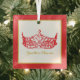Cet ornement représenté avec une couronne américaine emblématique imprimée sur un ornement en verre carré. Personnalisez le texte à votre propre titre, nom ou phrase. Montré en blanc arrière - plan, couleur rouge bordure extérieure, couleur or foncé frontière intérieure et couleur rouge image de couronne. Vous pouvez personnaliser cet article en changeant la couleur de la couronne, du texte et de l'arrière - plan si vous le désirez. Customisez cet objet avec ce modèle ou achetez comme indiqué. Image sous licence