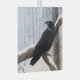 Un corbeau noir assis sur une branche d'arbre. L'hiver et les arbres tout autour avec la neige.