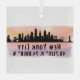 L'ornement en verre présente la silhouette de la ligne d'horizon de New York avec éclaboussure d'aquarelle et coordonnées de latitude et longitude