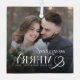 Cet élégant ornement moderne en verre de Noël pour jeunes mariés dispose d'un modèle photo avec un revêtement de typographie "Marié & Joyeux" élégant et audacieux.