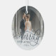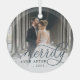 L'élégant ornement photo de vacances pour les jeunes mariés présente une photo mariage préférée avec "Merrily Ever After" superposé dans un script de calligraphie chic. Personnalisez avec l'année en bas.