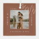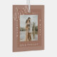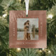 Un ornement en verre photo minimaliste et moderne pour commémorer votre premier mariage de Noël. Le design est simple et minimaliste avec un design photo carré pour afficher votre photo mariage spéciale. "Marié & Joyeux", nom de l'année et du couple affiché dans un design moderne simple autour de la photo.
