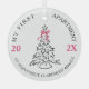 Mon premier Noël dans le nouvel appartement garde l'ornement et la décoration. Doté d'un arbre de Noël dessiné à la main avec un arc rose fantaisiste, cet ornement ajoutera un accent tendance unique à votre maison.