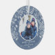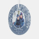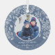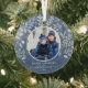 L'ornement de Noël en verre rond présente votre photo entourée de feuilles blancs, de baies et de points sur un arrière - plan bleu. CONSEIL : Téléchargez une photo haute résolution qui présente les enfants au milieu. Les ornements font des cadeaux mémorables pour la famille et les amis ou créent pour vous-même. PLUS de couleurs dans notre magasin.