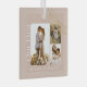 Simple et moderne trois photo-keepsaké photo ornement en verre pour commémorer votre premier mariage de Noël. Le design est simple et minimaliste, avec un collage photo design de trois carrés pour afficher votre photo mariage spéciale. Ajoutez votre nom en bas. Conception par MoodthologyPapery