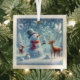 Dans un ciel nuageux bleu, un bonhomme de neige à nez carotté Sporting un Casquette noir recouvert de neige et une écharpe orange, avec une étincelle neige dans sa respiration souffle des bulles transparentes tandis que ses amis enjoués Bubbly Two Deer and Two White Turtle Doves regarde comme son public.