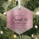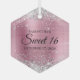 Créez votre propre ornement Sweet 16 hexagone pour votre fille. Customisez la calligraphie "Sweet 16" ou le style de police avec une autre célébration d'anniversaire. L'arrière - plan de l'art numérique présente une parties scintillant gris argenté et un fond sombre en satin rose clair. Fille 16e anniversaire ornement pour elle.