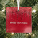 Cette décoration en verre est présentée dans une taille carré avec une fausse parties scintillant festive des fêtes qui s'écoule du haut avec Joyeux texte de Noël. Le ton rouge sur la couleur de ton. Personnalisez avec le texte du nom et de la date. Customisez cet objet avec ce modèle ou achetez comme indiqué.