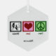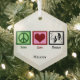 Un signe de paix, un coeur, et un masque heureux et triste symbolisant l'action. Un cadeau mignon pour un acteur dans un club de théâtre ou une compagnie de théâtre. Peace Love Théâtre ornement de Noël avec votre texte personnalisé pour un grand cadeau.