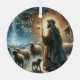 This nativity shepherd scene shows a bright heavenly north star shining in the night sky.