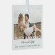 Un ornement moderne "joyeux et marié" un modèle photo de vacances en verre. Noms dans un script avec du texte personnalisable.
