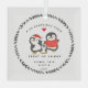Un ornement de Noël familial parfait avec une famille de pingouins douces avec une couronne dessinée à la main moderne et un petit coeur. Cadeau de conservation daté pour votre Noël familial.