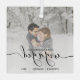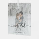 Commémorez votre fiançailles avec ce magnifique ornement de gardien moderne. Le texte noir indique "Notre premier Noël engagé", avec le mot "engagé" dans un élégant script d'écriture manuscrite avec des fioritures avant et après. Remplacez l'exemple d'image par votre photo préférée, et ajoutez vos noms et l'année. Un filtre dégradé blanc permet de faire apparaître le texte.