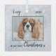 Mon premier Noël ! Décorez votre arbre ou envoyez un cadeau spécial avec ce super mignon personnalisable personnalisation de l'ornement de vacances photo animal de compagnie. Ajoutez la photo de votre chien et personnalisez avec le nom et l'année. DROIT D'AUTEUR © 2020 Judy Burrows, Black Dog Art - Tous droits réservés. Premier Noël mignon chiot - Argent chien animal de compagnie photo ornement