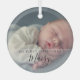 Le premier script photo de Noël du bébé garde l'ornement. Personnalisez avec votre photo de bébé préférée avec leur nom et leur date pour créer un souvenir unique et un cadeau pour un premier Noël spécial. Un joli souvenir pour célébrer votre nouvelle arrivée ! Conçu par Thisisnotme©