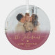 Elégant minimaliste Rouge et Or Nom de famille et "Joyeux Noël" texte Ornement photo. Caractéristiques de votre photo de famille préférée, avec script de calligraphie manuscrit "nom de famille", texte "Joyeux Noël", petit motif de coeur et année en rouge et or (dégradé rouge de la photo superposition). Facile à personnaliser. Conseil photo : recadrez votre photo sur le formulaire carré avant de la télécharger.