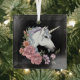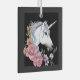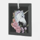 Une licorne blanche avec des fleurs roses, pêche et lavande sur fond noir