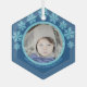 Concevez ces ornements uniques personnalisés en verre photo, imprimés uniquement pour vous, et créez des cadeaux de Noël précieux pour vos amis et votre famille. Le design chic faux bleu opal snowflake présente votre photo transformée en une image ronde encadrée d'une fausse bordure bleue opale, posée sur un arrière - plan de bleu profond. Ajoutez simplement votre photo à l'aide du modèle facile et regardez-la devenir une partie de ce design élégant de flocon bleu opal. Personnalisez cet ornement en verre hexagone unique avec votre texte personnalisé en bas dans une police bleu ciel clair qui est équilibrée par les neuf minuscules flocons de neige faux bleu opal qui descendent en bas de chaque ornement. Les ornements personnalisés sont une façon agréable de commémorer le premier Noël du bébé, votre premier jour férié en couple marié ou comme une façon mignonne d'afficher des photos de vacances familiales ou d'animaux de compagnie. Customisez ces flocons de neige uniques en faux bleu opal ornements de Noël avec vos photos précieuses et faites vos propres cadeaux personnalisés qui sont sûrs d'apporter des sourires à tout le monde.