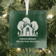 Cette société immobilière forestière cadeau ornement de Noël est parfaitement customisé pour un courtier qui a une maison ouverte près de la nature ou des bois. La silhouette verte des arbres derrière une maison de cabine en bois rond et personnalisée avec votre agent et nom d'entreprise de l'immobilier pour le marketing dans les bois d'arrière-bois.
