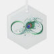 Le symbole de l'infinity with a bright, green, artistic peacock feather on a white background. Tattoo style.