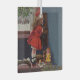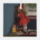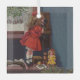 Cette belle image provient d'une ancienne carte de Noël, montrant une petite fille qui fait son appel téléphonique de Noël. Vintage et ancien.
