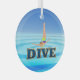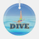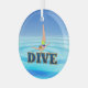 Obtenez un simple slogan, un mot, Dive, sur un ornement de verre avec design de plongeur féminin.